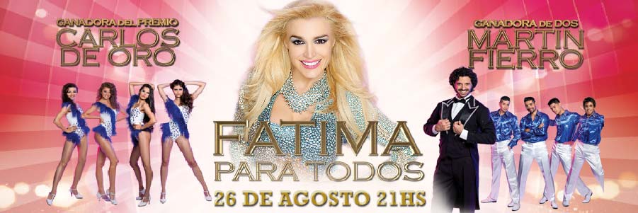 Fatima Flórez presenta la gira nacional e internacional de su multipremiada obra Fatima para Todos, reciente ganadora del Premio Carlos de Oro 2016. Este show recargado donde Fátima Flórez actúa, canta, baila y nos vuelve a deleitar con su histrionismo y una galería de casi 40 divertidos personajes donde incorpora a estrellas nacionales y de todo el mundo, junto a las más grandes imitaciones que realiza en el programa Showmatch y en los más importantes programas de la televisión Argentina.